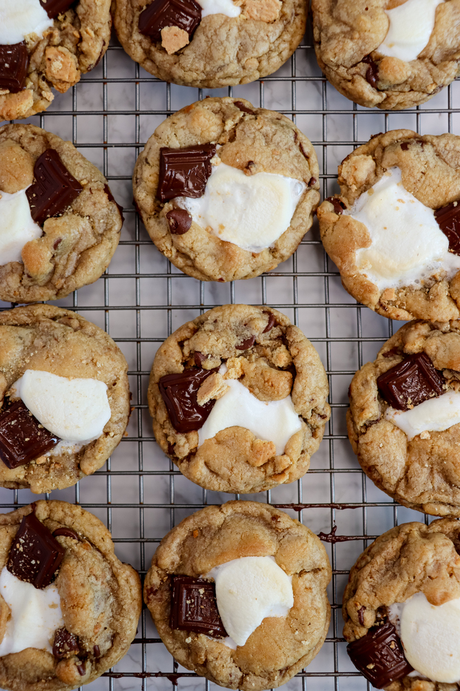 I don’t know about you, but we usually buy s'mores ingredients at the beginning of the summer and only make them once or twice. Here is a great way to use up the extra chocolate, graham crackers, and marshmallows you may have laying around. I used a dark chocolate Hershey’s bar to replace some of the chocolate in my chocolate chip cookie recipe and it was delicious, but feel free to use a regular Hershey’s bar, or just chocolate chips instead.